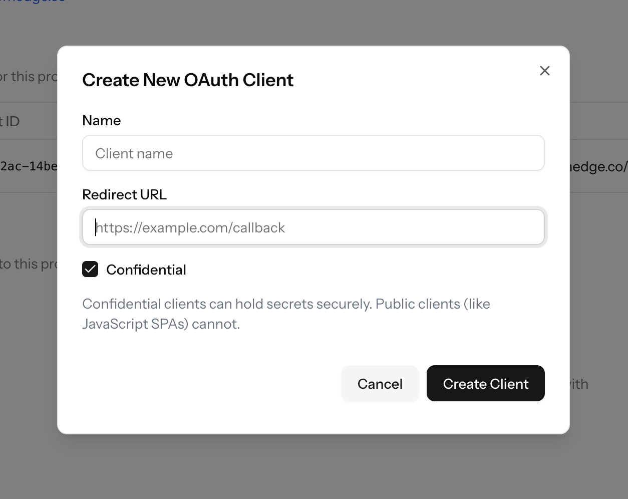 Các project sẽ sử dụng cặp client credentials này để triển khai authentication.