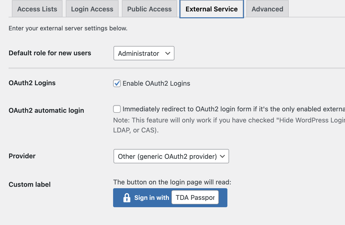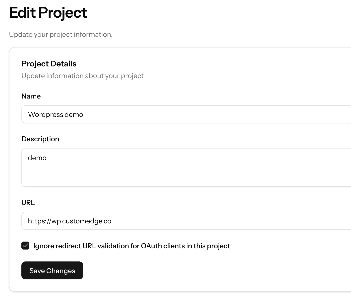 - Tạo project cho các site wordpress trên Passport, chú ý check Ignore redirect URL validation…